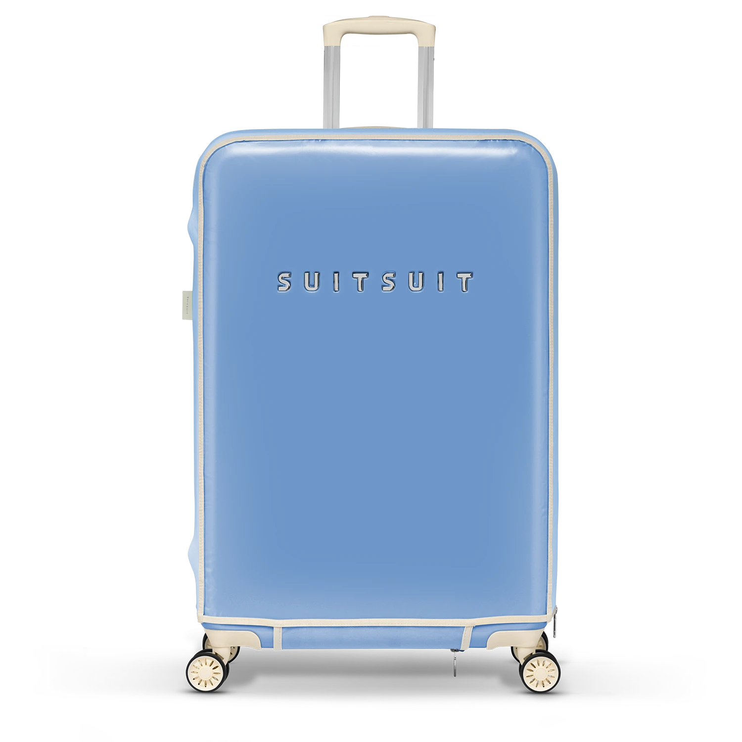 De Fabulous Fifties beschermhoes is dé perfecte oplossing voor het behouden van een schone en krasvrije koffer. Met de extra beschermlaag houd je je SUITSUIT koffer zo lang mogelijk mooi. De voor- en achterzijde van de hoes zijn mat transparant PVC, zodat de kleur van je Fabulous Fifties koffer goed zichtbaar blijft. De iconic kleur Alaska Blue vind je terug aan de boven- en zijkanten van de beschermhoes.